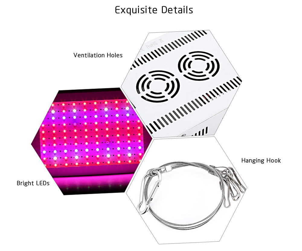 - 80W Grow Light: include UV and IR which is ideal for all kinds of indoor plants seeding growing and flowering at all growth stages